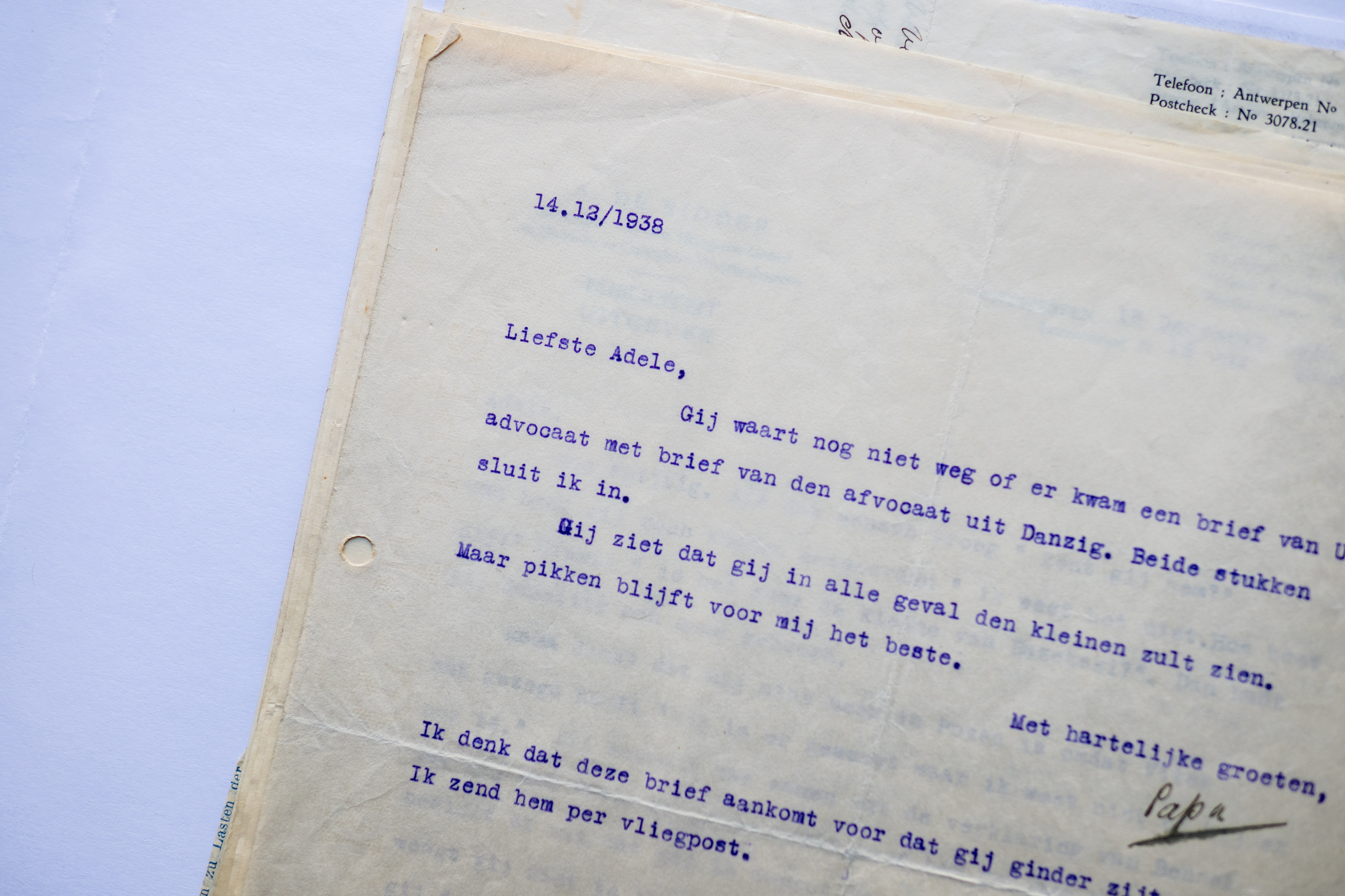 “Ik ben bij advocaat Rotsaert geweest, die zegt dat in Danzig een proces kan begonnen worden. (...) Hij geeft den raad den kleine te gaan “halen” en als gij daartoe mocht besluiten ben ik bereid mede te gaan.”